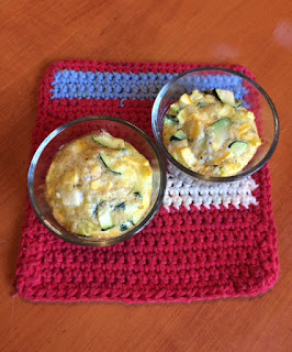 Mix ingredients. Pour into ramekins, small baking dish, or I use 2 small glass bowls. Bake at 400 degrees for 20-30 minutes.